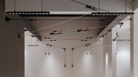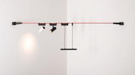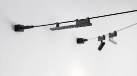 Une corde, le câble qui transporte l'énergie, et des clous, les éléments de fixation dans l'espace, sont essentiels pour aller loin et dépasser les limites imposées par la rigidité des systèmes. Le câble, de section minimale mais capable de supporter des contraintes mécaniques et thermiques, est le canal de distribution d'énergie du système et l'élément porteur sur lequel sont reliés les éléments légers. Il chemine harmonieusement dans l'espace, transcendant les limites de l'espace tridimensionnel. Il est fixé au côté, au sol ou au plafond par des éléments mécaniques. Il y chemine sans nécessiter de coupure ni d'interruption, dessinant dans l'espace un réseau de lignes régulières, horizontales ou verticales, mais aussi librement inclinées. À partir d'une seule prise de courant, il peut fonctionner indéfiniment, la seule limite étant la puissance installée sur sa longueur.
