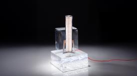 En abandonnant sa forme glacée, la carotte de Criosfera adopte une stratification composée d'un cylindre en verre soufflé recyclé, soit un noyau optique riveté qui puise son inspiration dans la nature réfléchissante de la surface glacée du haut-plateau antarctique pour maximaliser la diffusion de la lumière, ainsi que d'un noyau interne à LED évoquant la stratification de la glace polaire.