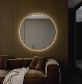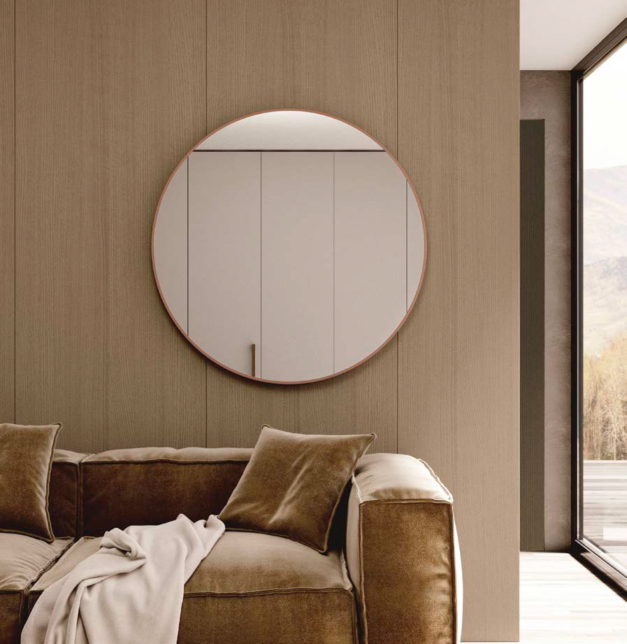 Épuré et minimaliste, encadré d’un seul plan avec un cadre de 1 cm d’épaisseur et de 4 cm de côtés, disponible en formats rond, carré ou rectangulaire à coins arrondis. miroir Reflect laqué Tina.