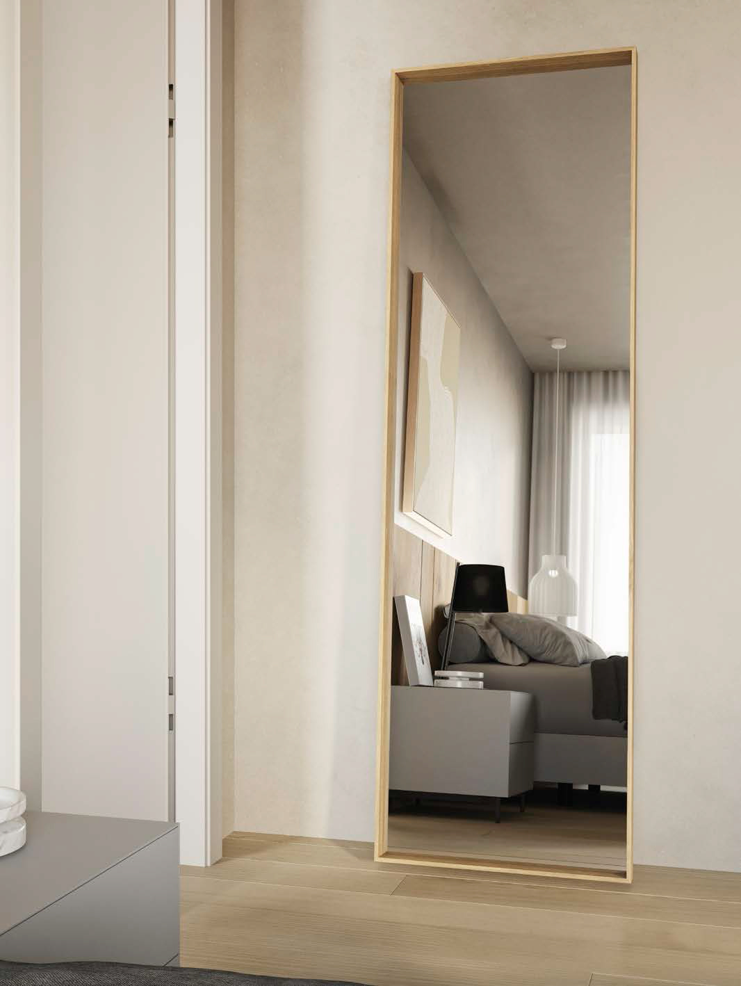 Élégant et discret, encadré d’un cadre aux bords nets et profonds. miroir Vista en chêne naturel.
