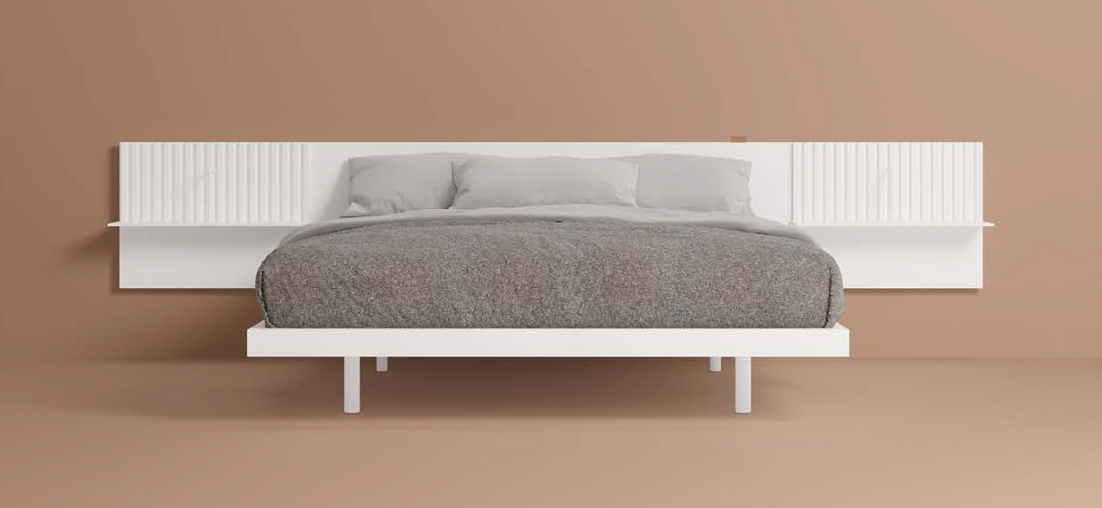 Utilisant le même système de fixation murale que les étagères ART, les têtes de lit présentent l'emblématique espace mural et peuvent s'étendre au-dessus ou
