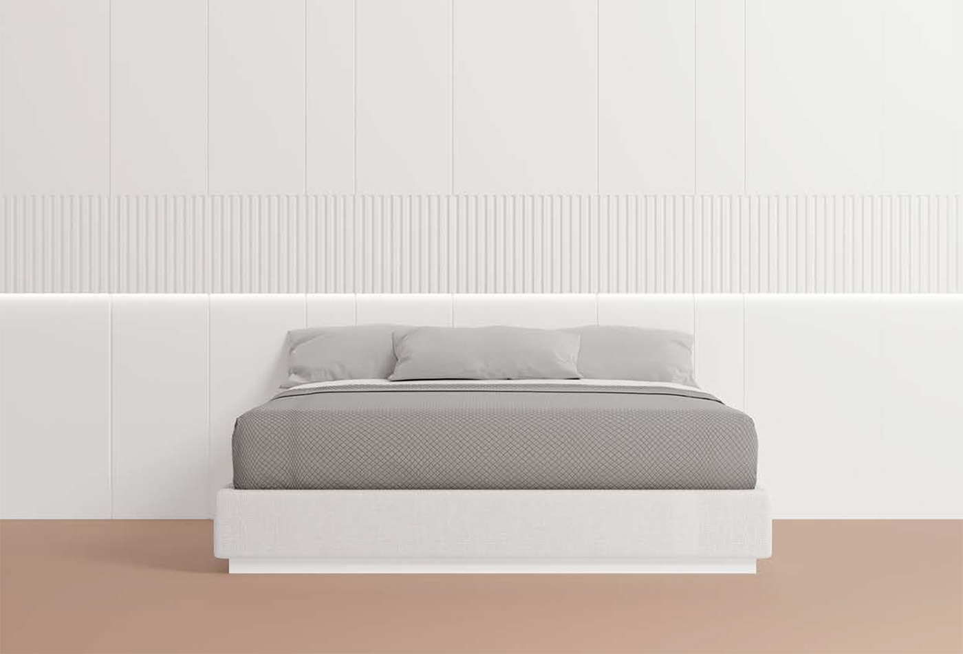 Ce système transforme le mur derrière le lit en tête de lit, offrant une totale liberté créative.