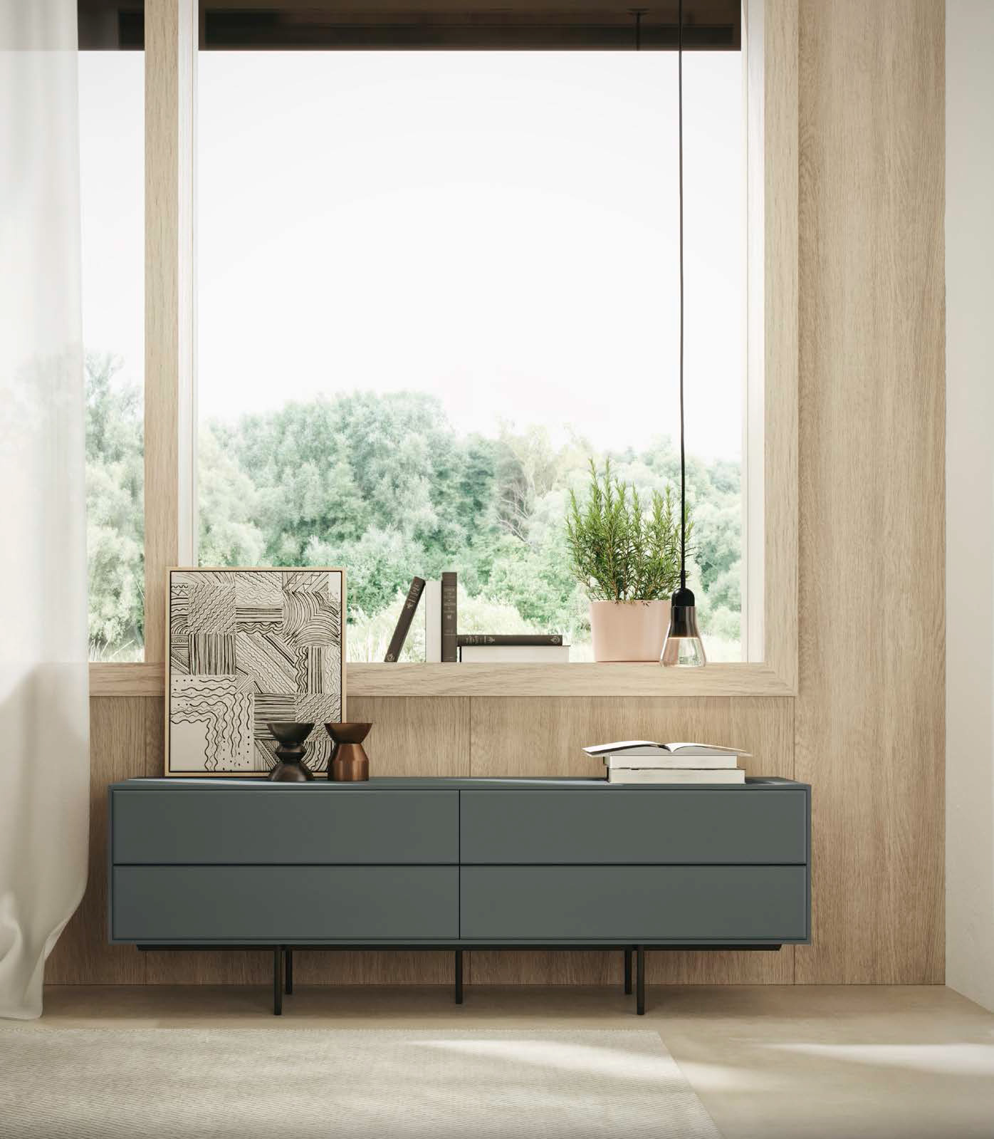 Commode F-10 couleur Algue avec pieds en métal laqué noir de la collection AD.