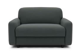 Les bords de ce canapé sont arrondis, ce qui confère à sa forme robuste une impression de douceur et de confort perceptible aussi bien de face que de profil.