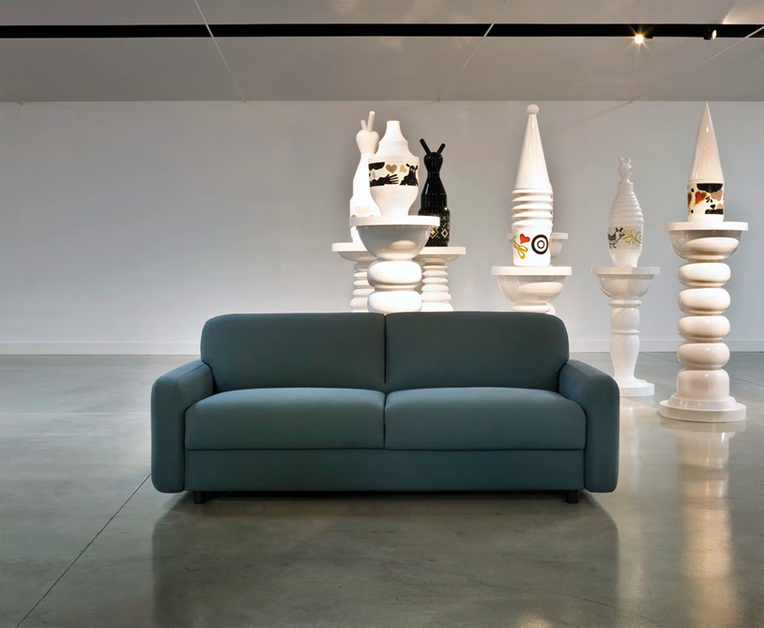 Il se transforme en lit d'un simple geste, sans avoir à déplacer les coussins. Matelas H 19 cm.