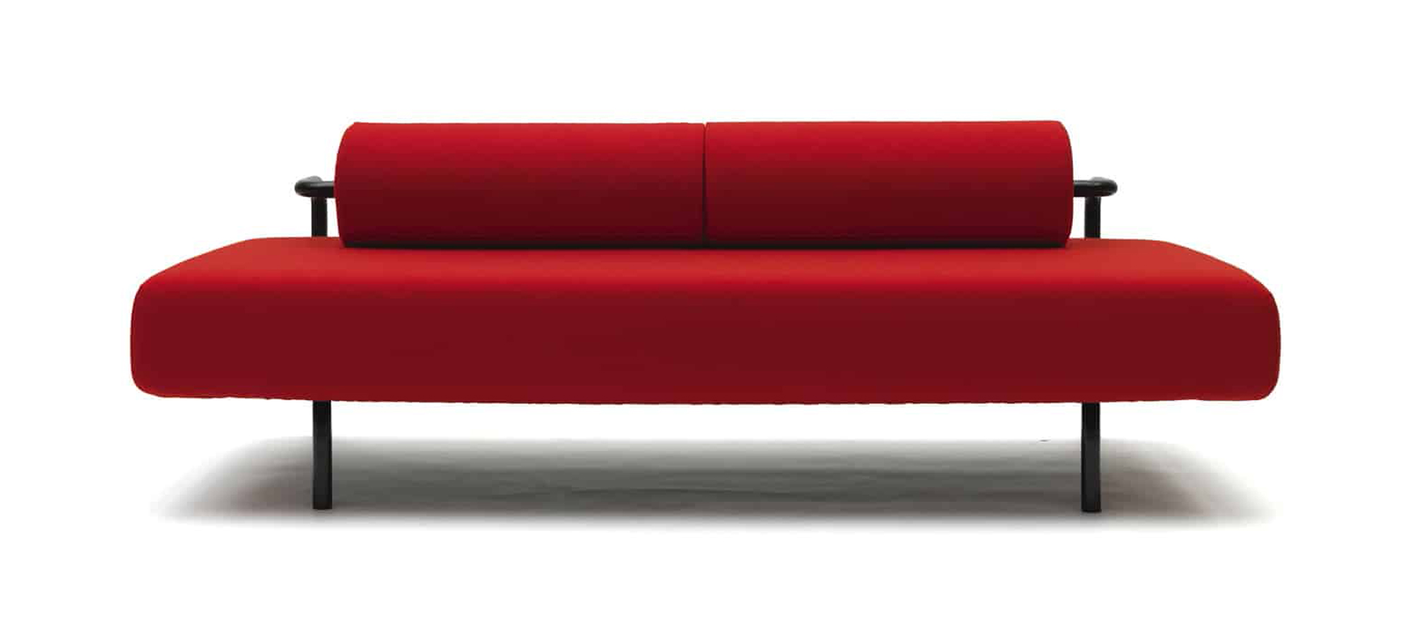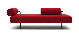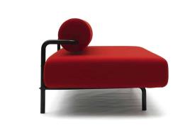 Campeggi Design. Paolo Imperatori Dimensions : l 202/245 x h 72 x p 96 cm Voici le canapé convertible redéfini par Paolo Imperatori (2009) dans sa forme la plus abstraite : une simple banquette rembourrée, où la simplicité est accentuée par l’absence de mécanismes complexes. Les deux coussins cylindriques, inspirés et réinterprétés du traversin typique des lits français, peuvent servir de dossier pour s’asseoir en journée et se transforment en une tête et un pied de lit confortables pour la nuit.