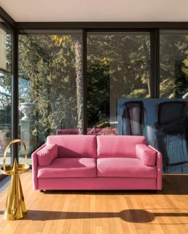 Campeggi Dimensions : l 178/198 x h 76 x p 98/210 cm Canapé intemporel au design épuré, capable d'habiller les espaces sans les encombrer, il est sublimé par un mécanisme qui le transforme rapidement et sans effort en un lit d'un confort exceptionnel et par des coussins pratiques faisant office d'accoudoirs. Avec sa ligne intemporelle, à la fois équilibrée et affirmée, il s'intègre facilement dans tous les intérieurs. La structure est en bois, le mécanisme en maille d'acier électro-soudée avec mousse de polyuréthane. Le revêtement, disponible dans une variété de tissus et de coloris, est entièrement déhoussable. canapé lit