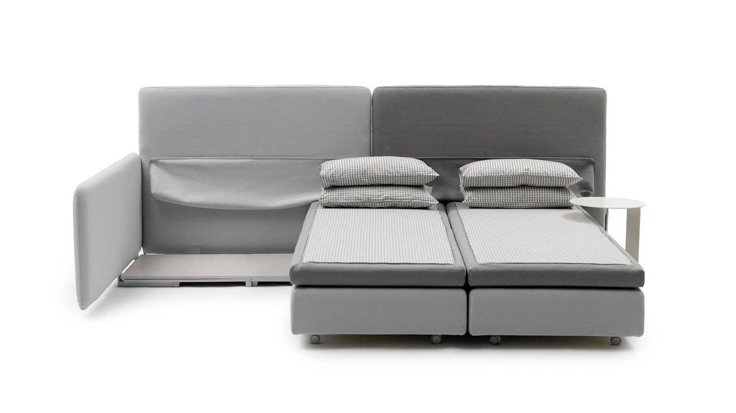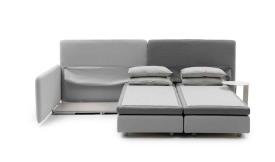 A-Accommodating, B-beautiful, C-omfortable, comme il se doit dans un salon. En quelques gestes, ce canapé se transforme en lit simple, lit double ou lits jumeaux. Son large dossier s'ouvre sur une poche qui se transforme en coussin lombaire confortable. Conçu par Giulio Manzoni pour de multiples configurations et usages, ABC est disponible avec un accoudoir à droite ou à gauche, offrant un système relaxant entièrement dépourvu de structure métallique. ABC : un canapé-lit aussi simple et essentiel que l'alphabet.