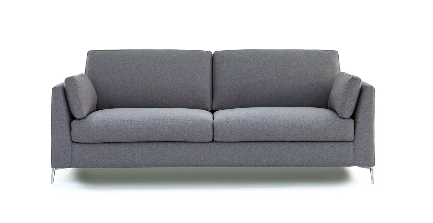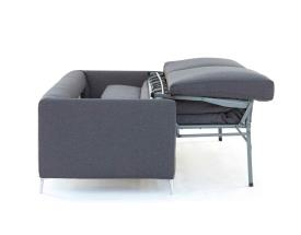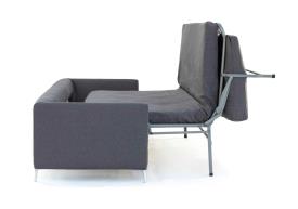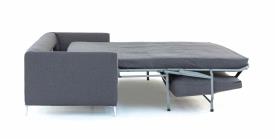 Pour une ambiance simple et élégante, découvrez Giù, le nouveau canapé reposant sur de robustes pieds en aluminium satiné. Cette particularité souligne le style épuré et minimaliste du produit. Une fois déplié, le canapé offre la sensation de se reposer sur un véritable lit.