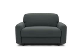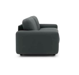 Les bords de ce canapé sont arrondis, ce qui confère à sa forme robuste une impression de douceur et de confort perceptible aussi bien de face que de profil.