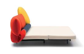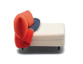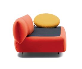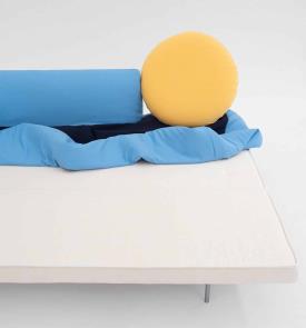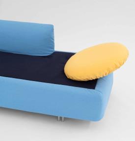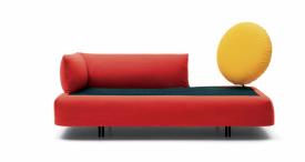 Oblò est un canapé convertible en lit simple, lit double et méridienne ; aucune de ses formes ne prédomine sur les autres. Conçu avec la fraîcheur de l’imagination enfantine, Oblò est entièrement personnalisable en termes de combinaisons de couleurs ou disponible dans la palette « ensoleillée » choisie par Vico Magistretti (structure et dossier rouges, coussins jaunes).