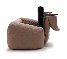 Le canapé Quilt se distingue par son capitonnage progressif qui crée un effet de mouvement unique, conférant au produit un dynamisme enveloppant. L'accoudoir, descendant jusqu'au sol, forme un pont, donnant l'impression que l'assise flotte, et exprimant légèreté et élégance. Quilt se transforme facilement en lit avec un matelas de 16 cm, offrant une solution polyvalente et remarquable. Un produit qui allie harmonieusement esthétique et fonctionnalité, combinant design, confort et style impeccable.
