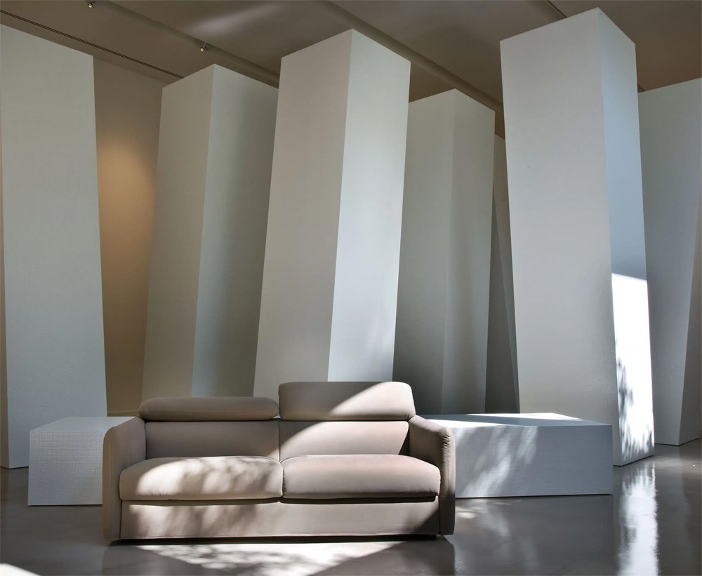 Un canapé conçu pour un usage quotidien, avec une rigidité adéquate et durable, et un lit qui se déplie sans retirer les coussins pour révéler une version nocturne d'un confort et d'une ampleur exceptionnels.