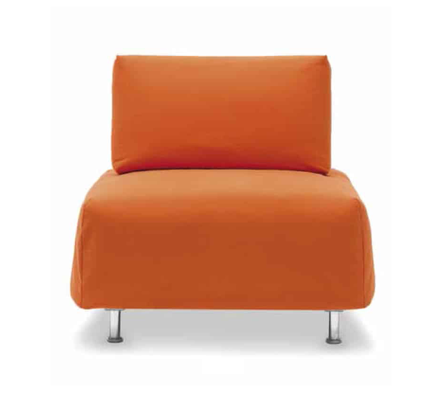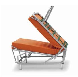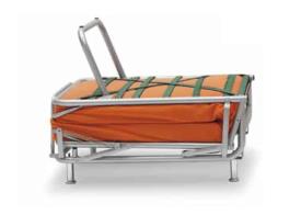 Pour transformer le fauteuil en lit, il suffit de soulever la housse à capuche.
