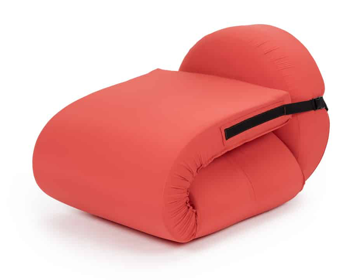 Douceur absolue, dans une étreinte à la fois métaphorique et tangible : Ipno est un petit fauteuil sans pièces rigides, un objet monomatériau qui se transforme en quelques secondes en un petit matelas de repos, une surface douce et épaisse qui s'éloigne du sol et offre tout le nécessaire pour dormir, à commencer par cette sensation essentielle d'espace personnel. Plié et maintenu par des sangles robustes munies de clips pratiques, il prend très peu de place, tandis qu'une fois ouvert, il révèle un microcosme dédié au repos, conçu de manière ergonomique pour un confort optimal. Rien n'est laissé au hasard : une couette douce et chaude est disposée à l'intérieur de ce petit fauteuil sur mesure, car il faut être prêt lorsque le sommeil frappe à la porte ! La housse est amovible et disponible en plusieurs coloris.