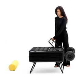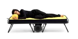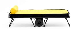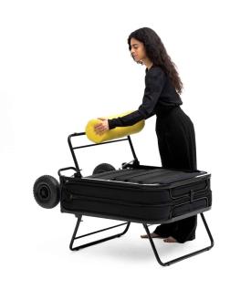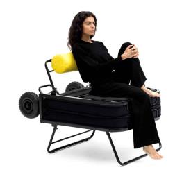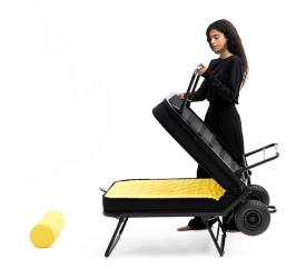 Bougez ! Libéré de tout compromis et de toute peur, jouez différents rôles avec légèreté et perspicacité, en restant toujours vous-même. Underdog, de Lorenzo Damiani (2023), est un produit qui, par sa structure de base apparente, se révèle insouciant et sans fard, contemporain et anticonformiste : un lit (ou siège) pliable et polyvalent, nomade grâce à son mécanisme de pliage qui le transforme en un grand chariot à deux roues surdimensionnées, facile à déplacer. Esthétiquement essentiel, brut, sans compromis mais aussi sans ostentation : une structure métallique simple et robuste, rationnelle comme le sommier réalisé en sangles verticales. Un matelas compact et confortable en polyuréthane expansé, une béquille semblable à celles des vélos, des couleurs évoquant le design industriel : Underdog est un meuble qui s'exprime sans intermédiaire. Et surtout, il répond !