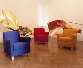 Un petit fauteuil amusant et coloré ; peu encombrant mais d'un confort incroyable ; presque classique, il peut être placé seul ou avec d'autres fauteuils, avec un petit canapé ou avec un plus grand.