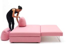 un canapé et un lit une place sont toujours à votre disposition. Au besoin, il se transforme en un grand îlot central ou en un confortable lit deux places.