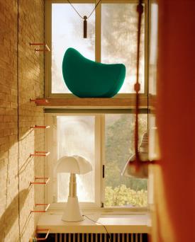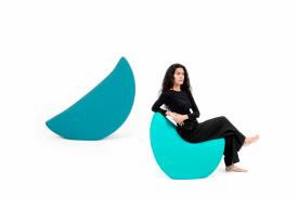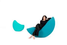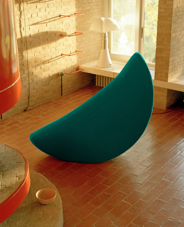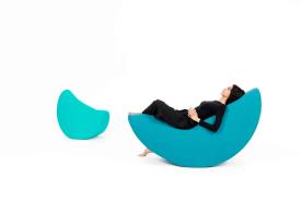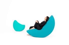Design. Emanuele Magini Clo est un objet abstrait, un demi-cercle à bascule qui dissimule avec élégance un siège douillet et confortable où l'on peut se détendre et se reposer.
