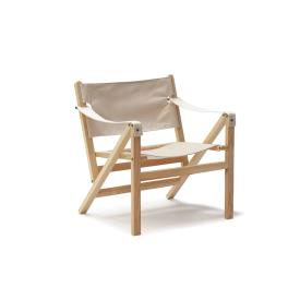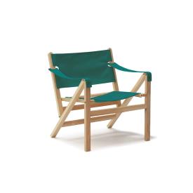 Conçue à l'origine dans un contexte militaire, la chaise safari est un siège facile à démonter et à transporter. Elle associe une structure en bois simple et épurée à un revêtement en toile qui garantit confort et légèreté. Mehari conserve ces caractéristiques et affirme son identité grâce à une structure qui, d'une simple rotation de l'assise, permet de l'ouvrir, de la fermer ou de la suspendre, s'adaptant ainsi aux différents besoins des espaces de vie contemporains. La collection est complétée par un canapé deux places, partageant la même structure que le fauteuil, et un pouf, tous deux pliables et suspendables. Fabriquée en frêne traité et verni, avec un revêtement en toile amovible et lavable, Mehari est conçue pour une utilisation aussi bien intérieure qu'extérieure.