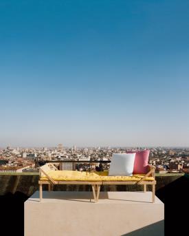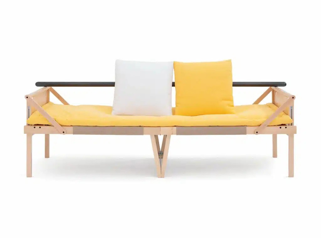 Ospite est un canapé-lit pliable doté d'une structure en érable naturel et de revêtements en coton et lin naturels. Se transformant en petit canapé ou en lit d'appoint, Ospite est un meuble multifonctionnel à l'allure volontairement discrète. Inspiré d'un lit de camp militaire, Ospite se plie facilement pour un encombrement minimal.