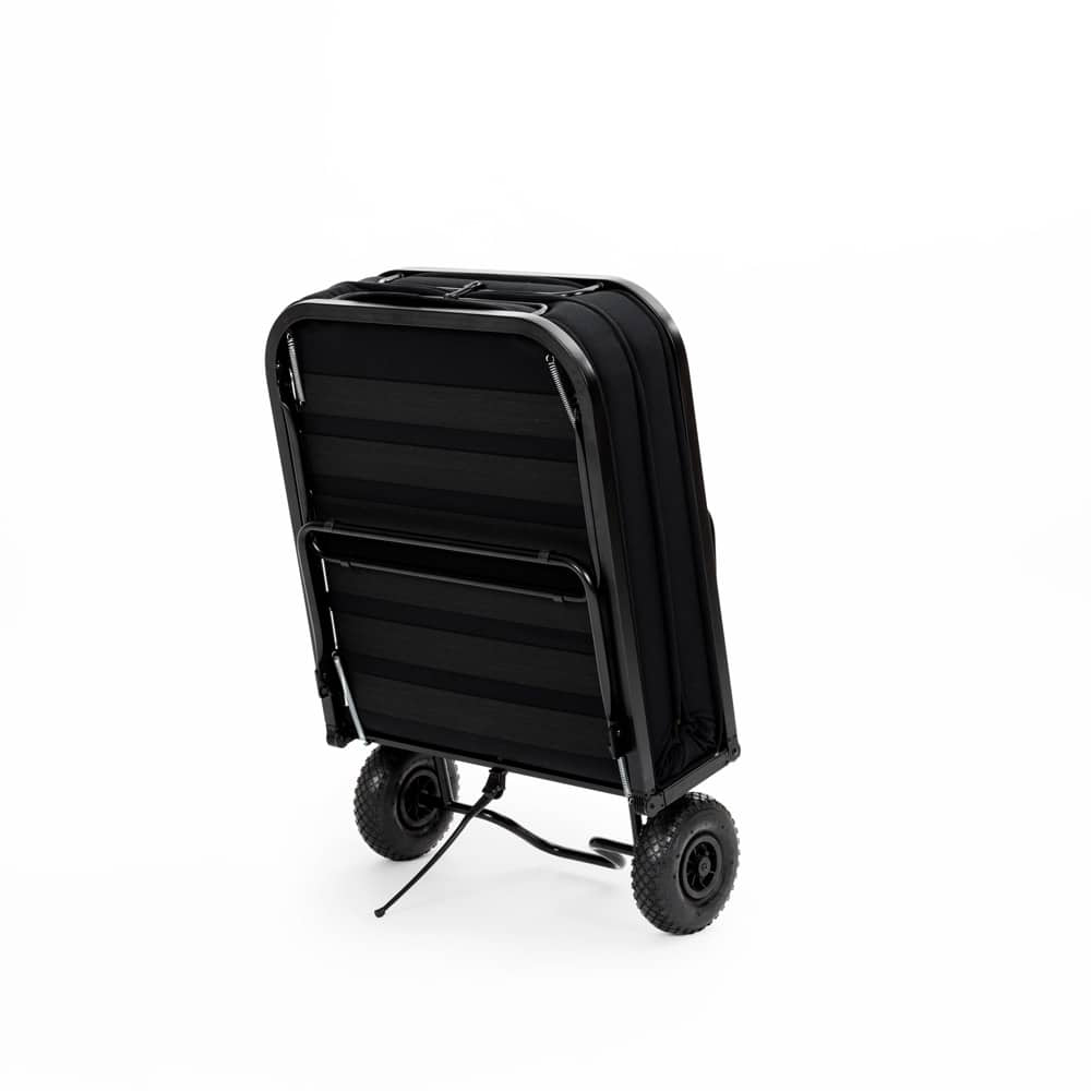 Bougez ! Libéré de tout compromis et de toute peur, jouez différents rôles avec légèreté et perspicacité, en restant toujours vous-même. Underdog, de Lorenzo Damiani (2023), est un produit qui, par sa structure de base apparente, se révèle insouciant et sans fard, contemporain et anticonformiste : un lit (ou siège) pliable et polyvalent, nomade grâce à son mécanisme de pliage qui le transforme en un grand chariot à deux roues surdimensionnées, facile à déplacer. Esthétiquement essentiel, brut, sans compromis mais aussi sans ostentation : une structure métallique simple et robuste, rationnelle comme le sommier réalisé en sangles verticales. Un matelas compact et confortable en polyuréthane expansé, une béquille semblable à celles des vélos, des couleurs évoquant le design industriel : Underdog est un meuble qui s'exprime sans intermédiaire. Et surtout, il répond !