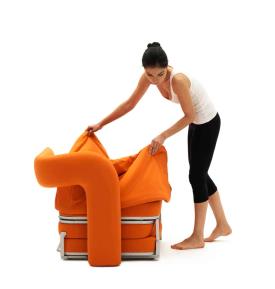 Deux Virgola s'assemblent pour former un petit canapé ou un lit deux places. Virgola de Giulio Manzoni (2011).