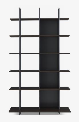 Cinna Design. Marie C Dorner Dimensions : l 120 x h 216 x p 37 cm ESPRIT DU MODÈLE : répétition de montants et d'étagères de profondeurs décroissantes vers la droite ou vers la gauche et le haut, le volume de cette bibliothèque s'estompe comme si elle tendait à disparaître vers le plafond. Ce jeu crée une diversité de rangements inattendue et intéressante. C'est au montage que le client choisira de positionner le montant le plus profond sur la droite ou sur la gauche de sa bibliothèque. Dans le cas de 2 bibliothèques juxtaposées on pourra donc avoir un effet visuel de vague, convexe ou concave, selon la position choisie pour chaque montant. Les fonds et les joues sont commandées sous des références séparées, mais il est recommandé de les choisir de la même couleur ; les étagères sont en revanche librement contrastées ou assorties.
