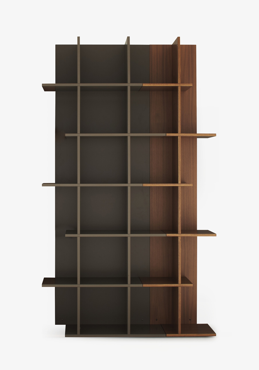 Cinna Design. Kazuko Okamoto Dimensions : l 36,1/72 x h 215,4 x p 31,9 cm Oka est une bibliothèque modulaire formée de cellules simples ou doubles que l'on juxtapose afin de bousculer les codes monotones de la bibliothèque. On peut ainsi mêler les couleurs et les matières (laque ou placage), en associant différentes tailles de module (largeur simple ou double) pour créer son propre meuble. Les étagères positionnées en quinconce permettent un emboitement parfait des modules et une asymétrie originale aux extrémités.