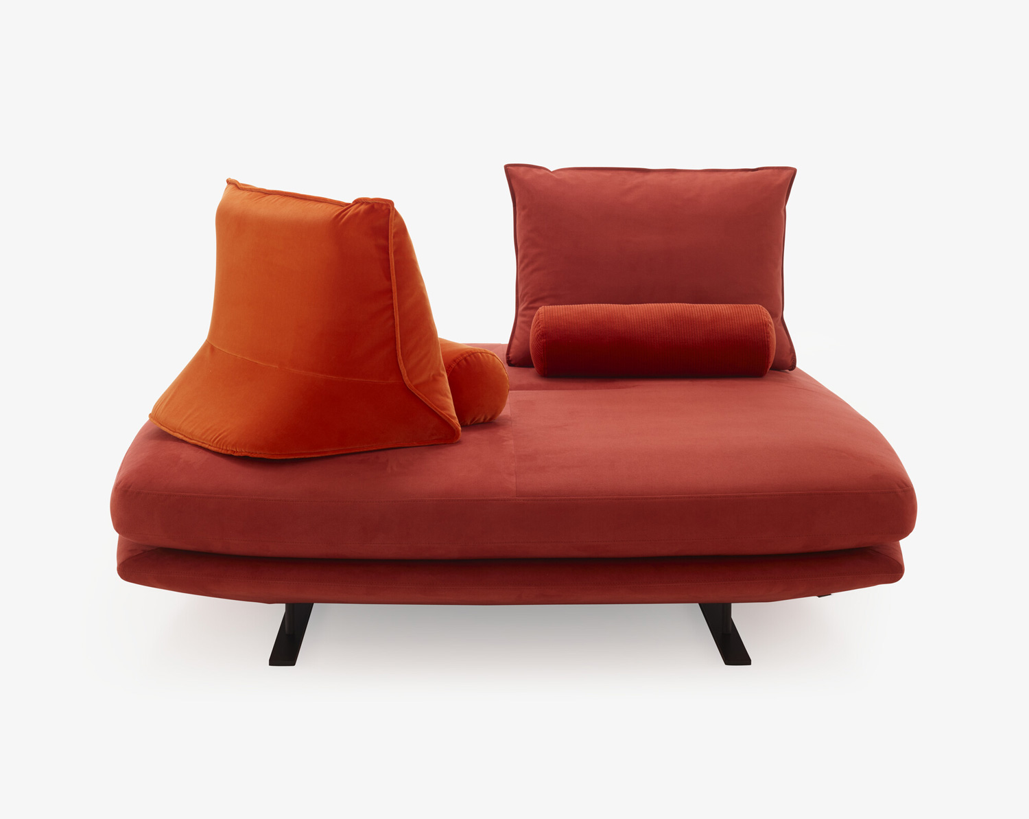 Cinna Design. Christian Werner Dimensions : l 160 x h 87 x p 160 cm Prado consiste en une vaste banquette associable et modulable à volonté, sur laquelle on dispose librement des coussins de dossier pour s'installer au gré de ses envies. Et cette liberté est totale puisque ces coussins, lestés et équipés d'un système antiglisse, n'ont besoin d'aucun point d'appui ou d'accroche pour être maintenus. STRUCTURE ET CONFORT Structure en panneau à écailles sanglée et parementée de mousse polyuréthane haute résilience Bultex 50 kg/m3 + ouate de polyester 110 g/m2 - coussin d'assise mousse en polyuréthane haute résilience Bultex 36kg/m3 et ouate de polyester 110g/m2. Coussin de dos en mousse injectée 60 kg/m3 surmoulée sur un insert métallique équipé de sangles élastiques, et parementée d'une galette de plumes d'oie neuves 10% duvet 90 % plumette et ouate 110 g/m2 compartimentée. Système anti glisse. Cale-reins plumes d'oie neuves 10% duvet 90 % plumette. Coussin accoudoir optionnel en mousse PU 35kg/m3 ouate de 200gr/m2. Le côté verso du coussin d'assise est recouvert d'un coutil de matelas : il suffit de le retourner et d'utiliser le drap-housse 100 % coton blanc, proposé en option, pour offrir un confortable couchage de 100 ou 120 cm de large. A l'exception de la base en cuir ou en microfibres tous les éléments du modèle PRADO sont déhoussables. canapé carré