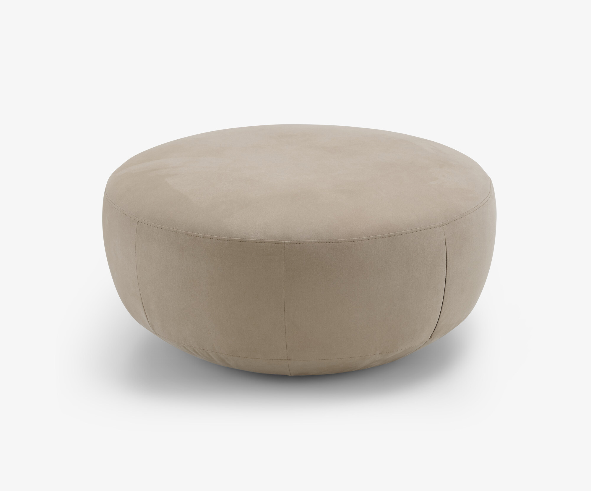 Cinna Design. Christian Werner - Pouf rond Dimensions : Ø 85 x h 40,5 cm STRUCTURE ET CONFORT Structure en panneau à écailles sanglée et parementée de mousse polyuréthane haute résilience Bultex 50 kg/m3 + ouate de polyester 110 g/m2 - coussin d'assise mousse en polyuréthane haute résilience Bultex 36kg/m3 et ouate de polyester 110g/m2. Coussin de dos en mousse injectée 60 kg/m3 surmoulée sur un insert métallique équipé de sangles élastiques, et parementée d'une galette de plumes d'oie neuves 10% duvet 90 % plumette et ouate 110 g/m2 compartimentée. Système anti glisse. Cale-reins plumes d'oie neuves 10% duvet 90 % plumette. Coussin accoudoir optionnel en mousse PU 35kg/m3 ouate de 200gr/m2. Le côté verso du coussin d'assise est recouvert d'un coutil de matelas : il suffit de le retourner et d'utiliser le drap-housse 100 % coton blanc, proposé en option, pour offrir un confortable couchage de 100 ou 120 cm de large. A l'exception de la base en cuir ou en microfibres tous les éléments du modèle PRADO sont déhoussables. pouf rond