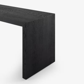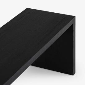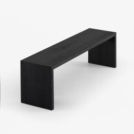 Dimensions : l 131/.../150 x h 44 x p 36,5 cm banc en bois massif de forme contemporaine. Finition noyer, chêne ou merisier. Bois traité à l'huile et recouvert d'un vernis mat.