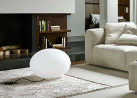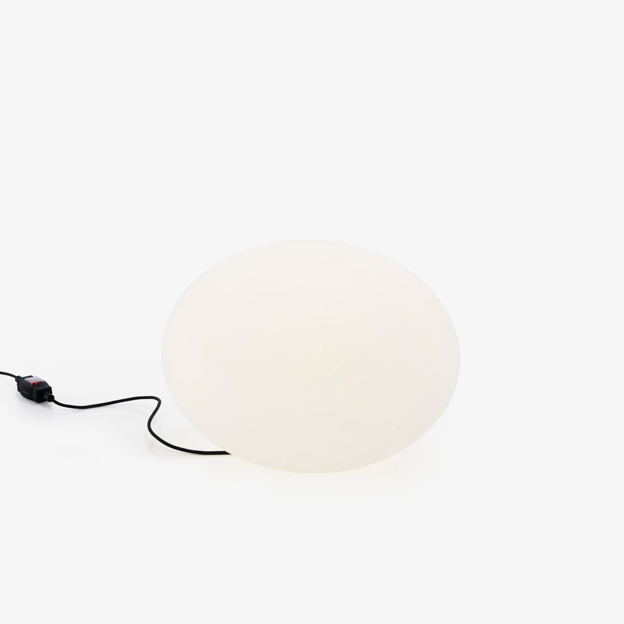 Lampes au design très pur, destinées à apporter des points de lumière supplémentaires dans une pièce. Lampe en polyéthylène (PE) rotomoulé microbillé blanc muni d'un câble textile rouge (2 m) et d'un interrupteur à pied noir. Livrée avec une ampoule LED 13W E27 3000K (blanc chaud).