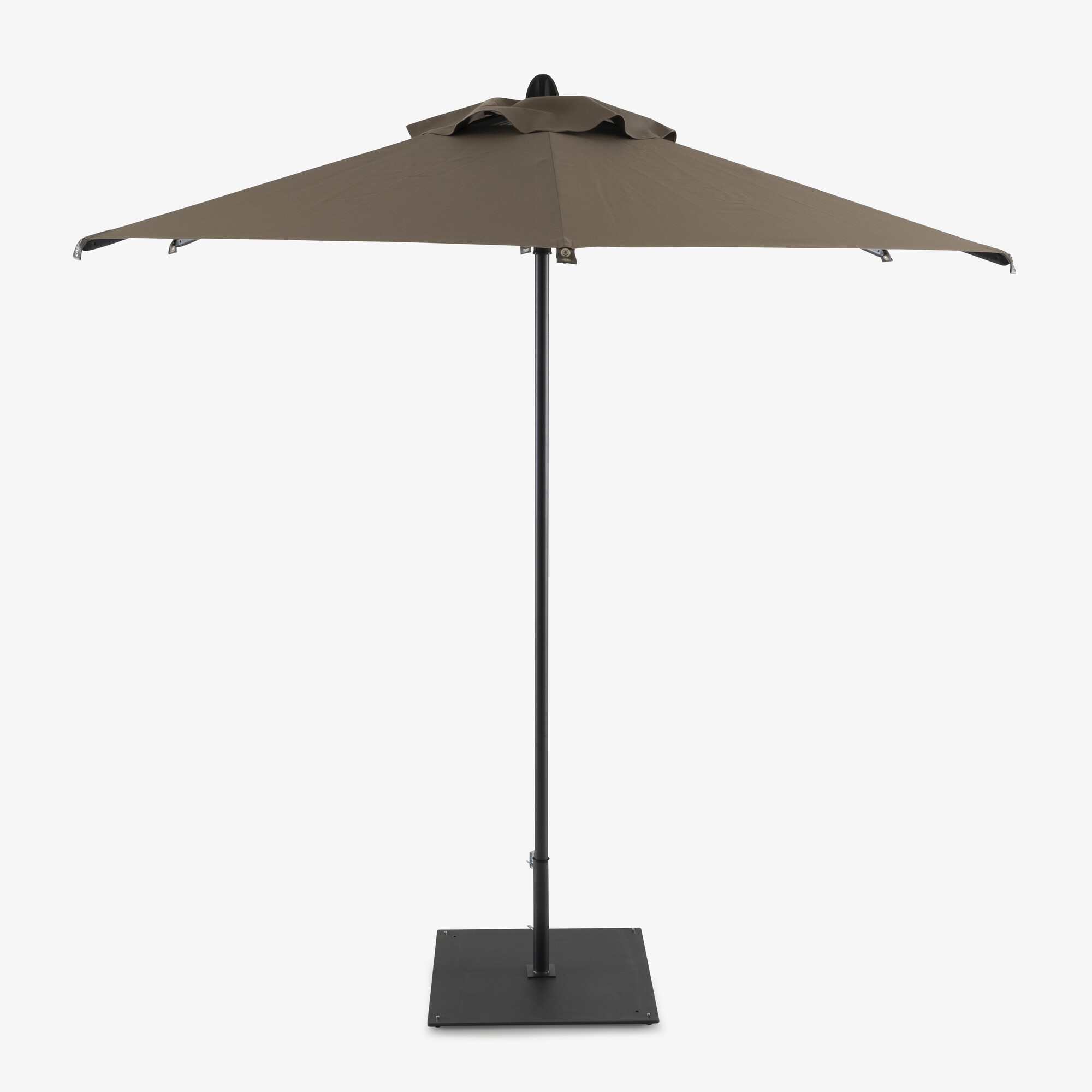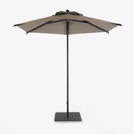 Le parasol Rihiveli se distingue par sa structure en aluminium laqué gris anthracite et son format hexagonal de 250 cm de diamètre. Son mât de 40 mm de diamètre et ses 6 baleines assurent une parfaite stabilité et résistance face aux brises estivales. Son système d’ouverture Push Up, ingénieux et ergonomique, permet une manipulation facile et sans effort. Ce mécanisme sophistiqué garantit un déploiement rapide et efficace. Le tissu 100 % acrylique coloris taupe offre une excellente protection contre les UV et les intempéries, assurant ainsi une longévité remarquable. La toile est traitée Teflon - imperméable aux moisissures et aux bactéries ; résistant à la lumière (grade 7/8); perméable à l'air ; résistant aux taches. De petites encoches aux extrémités de la toile permettent d’attacher le parasol en cas de vent fort. La base (en option, référencée séparément du parasol) en acier galvanisé laqué coloris anthracite (65x65 cm, lestée 35 kg) garantit une stabilité optimale. Elle est dotée d’un tube en métal (Ø 45 mm) et peut être équipée de roulettes pour un déplacement facilité.