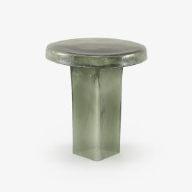 Sucre est une table d’appoint qui célèbre la poésie du verre soufflé. Sculptée d’un seul souffle, elle révèle un plateau aux contours organiques, marqué de fines bulles figés dans la matière. Son pied en losange, précis et structuré, contraste avec la forme de la surface délicatement irrégulière, affirmant un équilibre entre maîtrise et spontanéité. Une pièce innovante qui évoque la poésie du verre en mouvement, figé dans sa plus belle imperfection. Table d’appoint verre bullé, soufflé bouche, teinté dans la masse, coloris vert sauge.