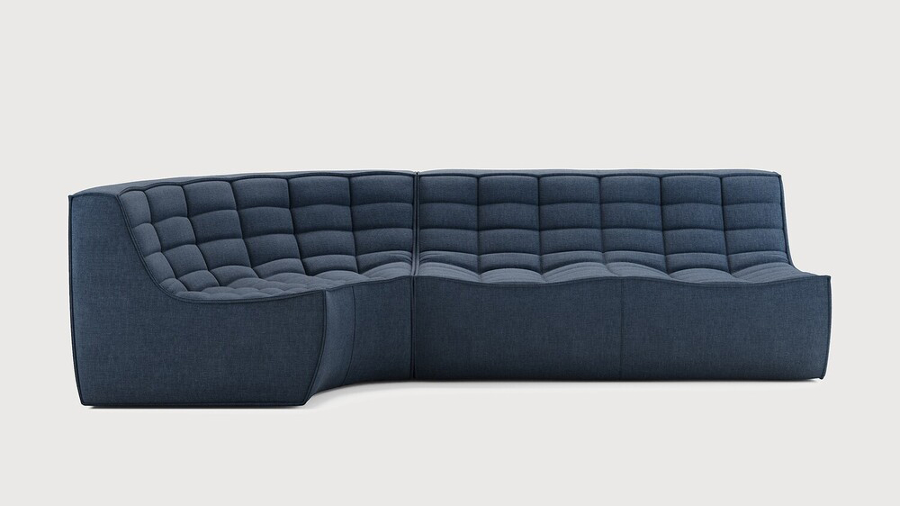 Composition canapé gauche : module 2 places + module d'angle arrondi à 90°. Des connecteurs inclus pour relier les modules du canapé.
