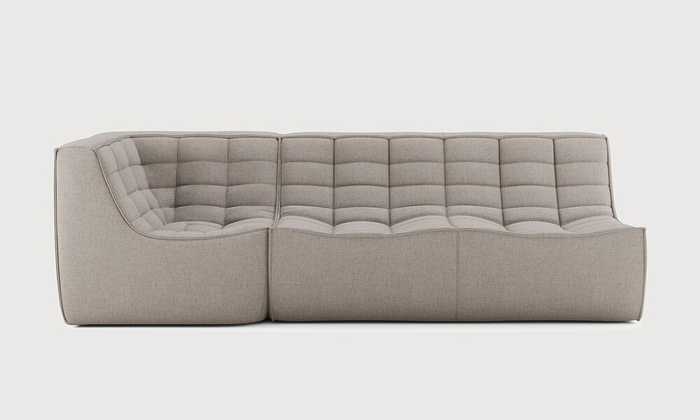 Composition canapé gauche : module 2 places + module d'angle carré à 90°. Des connecteurs inclus pour relier les modules du canapé.