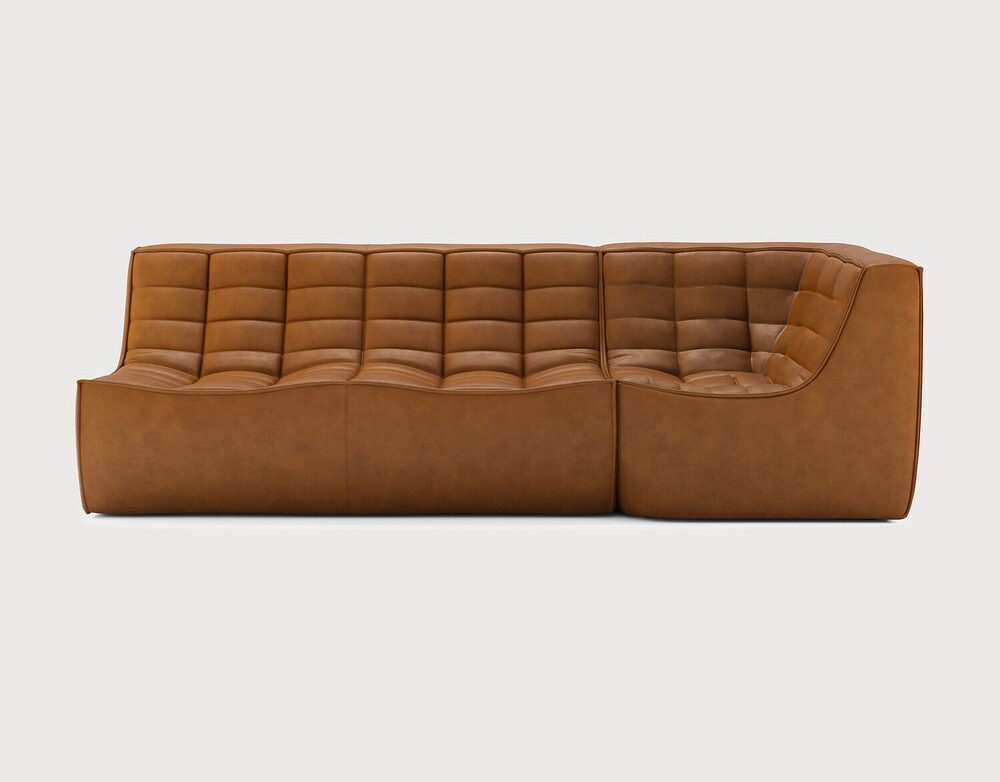 Ethnicraft Design. Jacques Deneef - Canapé modulaire N701 Dimensions : l 231 x h 76 x p 91 cm Le canapé N701 offre un design chaleureux qui respire le confort et la détente. En combinant les modules aux dimensions variées, vous avez une infinité de possibilités dès lors qu'il s'agit de créer votre propre style d'intérieur. Conçu par Jacques Deneef, il est disponible en plusieurs couleurs et matières avec des options pré-configurées ou entièrement personnalisable. Composition canapé droit : module d'angle carré à 90° + module 2 places. Des connecteurs inclus pour relier les modules du canapé. 100% cuir aniline. Des variations de couleur peuvent se produire. canapé modulaire
