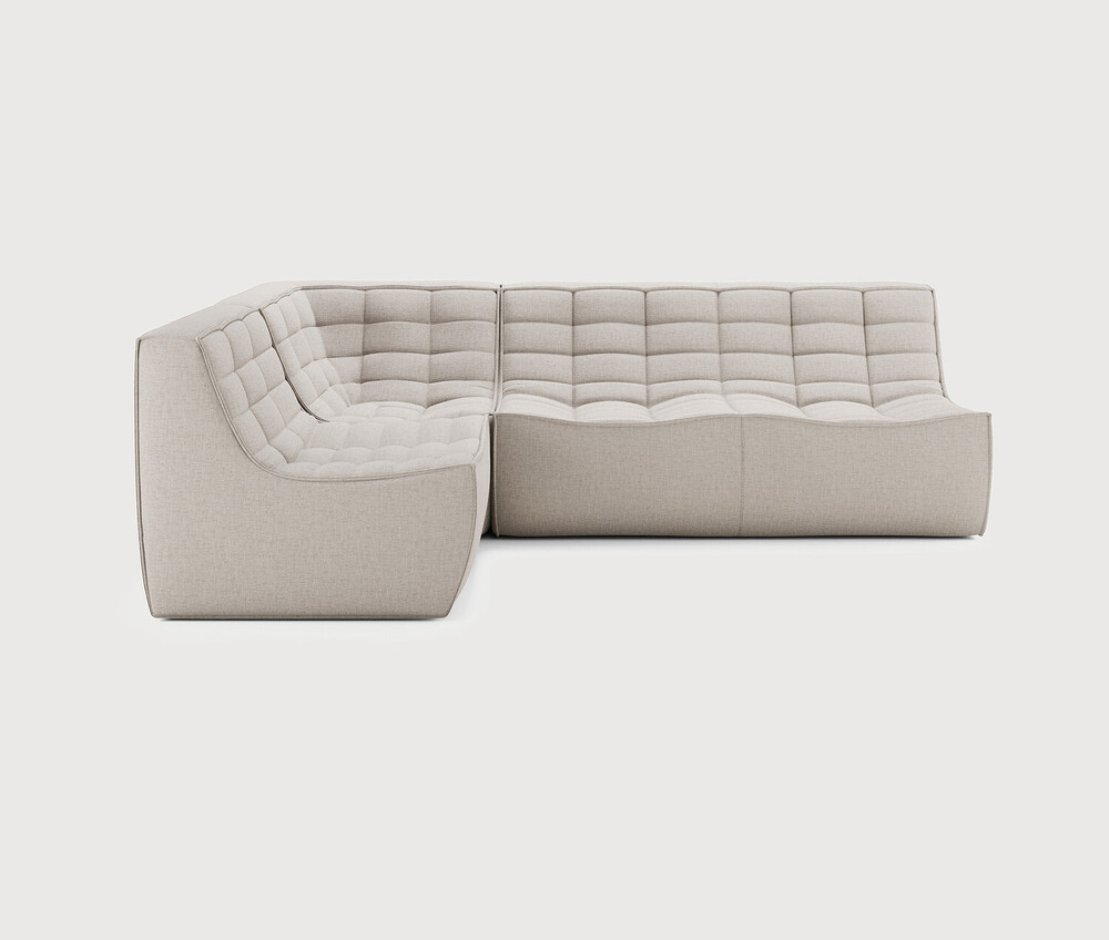Ethnicraft Design. Jacques Deneef - Canapé modulaire N701 Dimensions : l 231 x h 76 x p 171 cm Le canapé N701 offre un design chaleureux qui respire le confort et la détente. En combinant les modules aux dimensions variées, vous avez une infinité de possibilités dès lors qu'il s'agit de créer votre propre style d'intérieur. Conçu par Jacques Deneef, il est disponible en plusieurs couleurs et matières avec des options pré-configurées ou entièrement personnalisable. Composition canapé gauche : module 1 place + module d'angle carré à 90° + module 2 places. Des connecteurs inclus pour relier les modules du canapé. canapé modulaire
