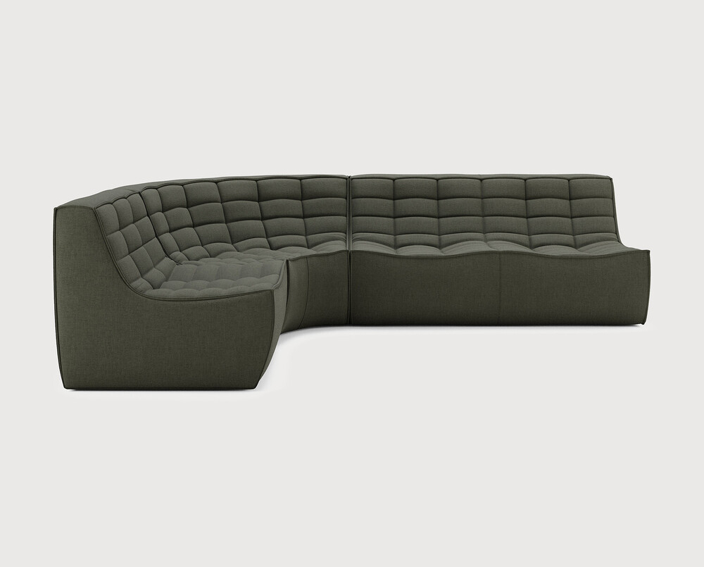 Ethnicraft Design. Jacques Deneef - Canapé modulaire N701 Dimensions : l 260 x h 76 x p 200 cm Le canapé N701 offre un design chaleureux qui respire le confort et la détente. En combinant les modules aux dimensions variées, vous avez une infinité de possibilités dès lors qu'il s'agit de créer votre propre style d'intérieur. Conçu par Jacques Deneef, il est disponible en plusieurs couleurs et matières avec des options pré-configurées ou entièrement personnalisable. Composition canapé gauche : module 1 place + module d'angle arrondi à 90° + module 2 places. Des connecteurs inclus pour relier les modules du canapé. Tissu réalisé à partir de coton recyclé avec des fibres supplémentaires pour des performances techniques. canapé modulaire