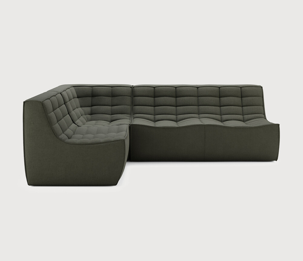 Composition canapé gauche : module 1 place + module d'angle carré à 90° + module 2 places. Des connecteurs inclus pour relier les modules du canapé.