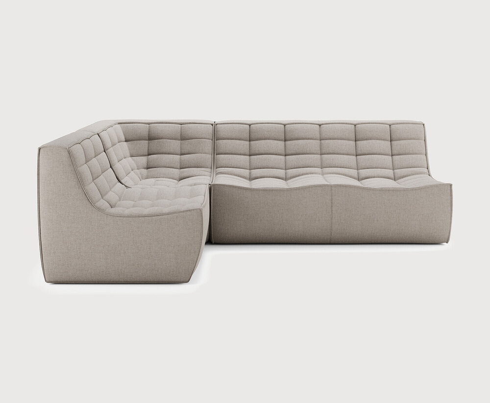 Ethnicraft Design. Jacques Deneef - Canapé modulaire N701 Dimensions : l 231 x h 76 x p 171 cm Le canapé N701 offre un design chaleureux qui respire le confort et la détente. En combinant les modules aux dimensions variées, vous avez une infinité de possibilités dès lors qu'il s'agit de créer votre propre style d'intérieur. Conçu par Jacques Deneef, il est disponible en plusieurs couleurs et matières avec des options pré-configurées ou entièrement personnalisable. Composition canapé gauche : module 1 place + module d'angle carré à 90° + module 2 places. Des connecteurs inclus pour relier les modules du canapé. Tissu réalisé à partir de coton recyclé avec des fibres supplémentaires pour des performances techniques. canapé modulaire