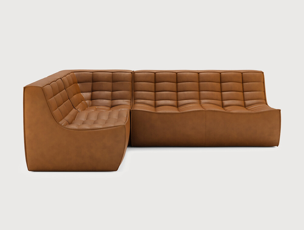 Ethnicraft Design. Jacques Deneef - Canapé modulaire N701 Dimensions : l 231 x h 76 x p 171 cm Le canapé N701 offre un design chaleureux qui respire le confort et la détente. En combinant les modules aux dimensions variées, vous avez une infinité de possibilités dès lors qu'il s'agit de créer votre propre style d'intérieur. Conçu par Jacques Deneef, il est disponible en plusieurs couleurs et matières avec des options pré-configurées ou entièrement personnalisable. Composition canapé gauche : module 1 place + module d'angle carré à 90° + module 2 places. Des connecteurs inclus pour relier les modules du canapé. 100% cuir aniline. Des variations de couleur peuvent se produire. canapé modulaire