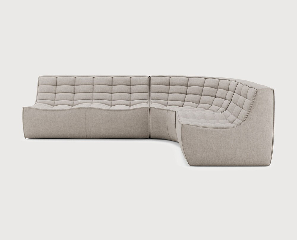 Ethnicraft Design. Jacques Deneef - Canapé modulaire N701 Dimensions : l 260 x h 76 x p 200 cm Le canapé N701 offre un design chaleureux qui respire le confort et la détente. En combinant les modules aux dimensions variées, vous avez une infinité de possibilités dès lors qu'il s'agit de créer votre propre style d'intérieur. Conçu par Jacques Deneef, il est disponible en plusieurs couleurs et matières avec des options pré-configurées ou entièrement personnalisable. Composition canapé droit : module 3 places + module d'angle arrondi à 90° + module 2 places. Des connecteurs inclus pour relier les modules du canapé. Tissu réalisé à partir de coton recyclé avec des fibres supplémentaires pour des performances techniques. canapé modulaire