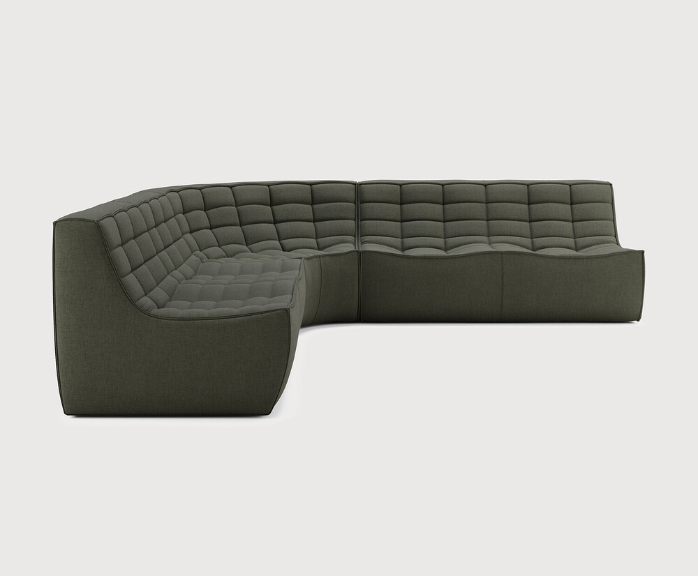 Ethnicraft Design. Jacques Deneef - Canapé modulaire N701 Dimensions : l 260 x h 76 x p 260 cm Le canapé N701 offre un design chaleureux qui respire le confort et la détente. En combinant les modules aux dimensions variées, vous avez une infinité de possibilités dès lors qu'il s'agit de créer votre propre style d'intérieur. Conçu par Jacques Deneef, il est disponible en plusieurs couleurs et matières avec des options pré-configurées ou entièrement personnalisable. Composition canapé gauche : 2 modules 2 places + module d'angle arrondi à 90°. Des connecteurs inclus pour relier les modules du canapé. Tissu réalisé à partir de coton recyclé avec des fibres supplémentaires pour des performances techniques. canapé modulaire