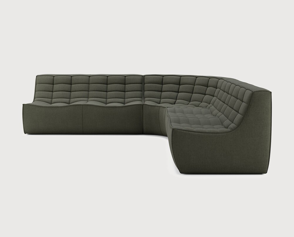 Ethnicraft Design. Jacques Deneef - Canapé modulaire N701 Dimensions : l 260 x h 76 x p 260 cm Le canapé N701 offre un design chaleureux qui respire le confort et la détente. En combinant les modules aux dimensions variées, vous avez une infinité de possibilités dès lors qu'il s'agit de créer votre propre style d'intérieur. Conçu par Jacques Deneef, il est disponible en plusieurs couleurs et matières avec des options pré-configurées ou entièrement personnalisable. Composition canapé droit : 2 modules 2 places + module d'angle arrondi à 90°. Des connecteurs inclus pour relier les modules du canapé. Tissu réalisé à partir de coton recyclé avec des fibres supplémentaires pour des performances techniques. canapé modulaire
