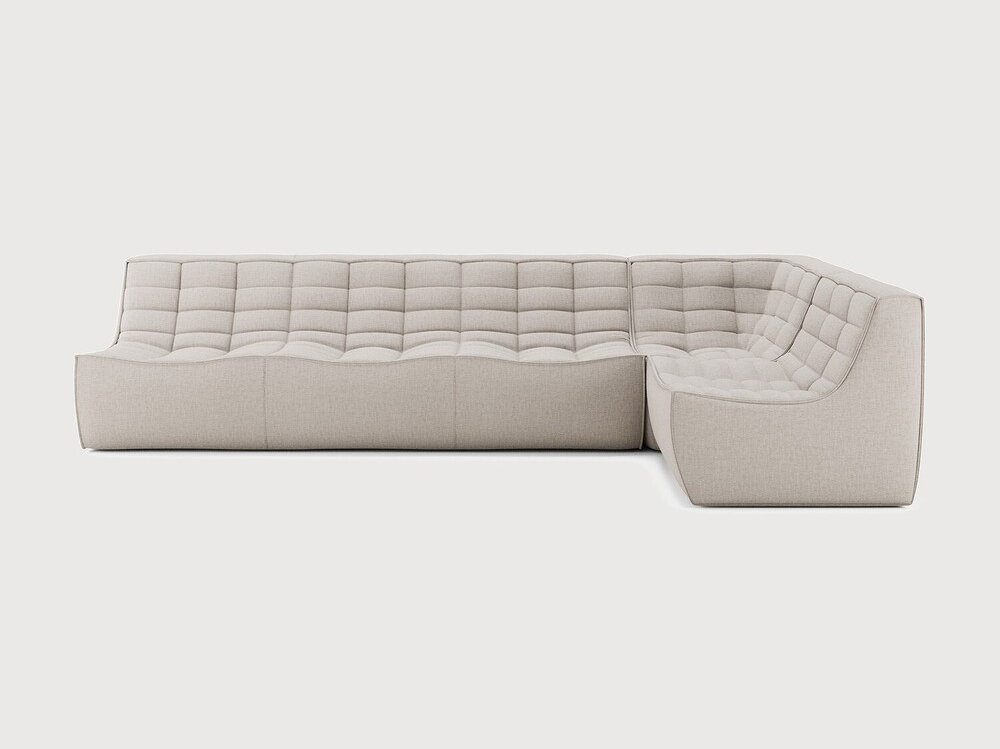 Ethnicraft Design. Jacques Deneef - Canapé modulaire N701 Dimensions : l 301 x h 76 x p 171 cm Le canapé N701 offre un design chaleureux qui respire le confort et la détente. En combinant les modules aux dimensions variées, vous avez une infinité de possibilités dès lors qu'il s'agit de créer votre propre style d'intérieur. Conçu par Jacques Deneef, il est disponible en plusieurs couleurs et matières avec des options pré-configurées ou entièrement personnalisable. Composition canapé droit : module 3 places + module d'angle carré à 90° + module 1 place. Des connecteurs inclus pour relier les modules du canapé. canapé modulaire