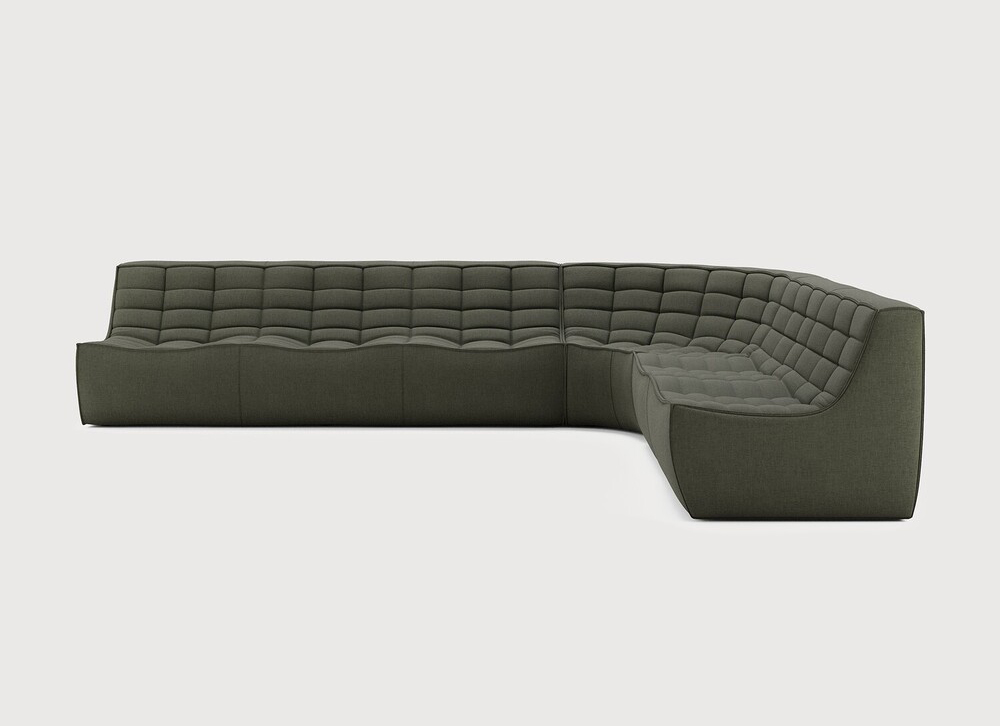 Ethnicraft Design. Jacques Deneef - Canapé modulaire N701 Dimensions : l 330 x h 76 x p 260 cm Le canapé N701 offre un design chaleureux qui respire le confort et la détente. En combinant les modules aux dimensions variées, vous avez une infinité de possibilités dès lors qu'il s'agit de créer votre propre style d'intérieur. Conçu par Jacques Deneef, il est disponible en plusieurs couleurs et matières avec des options pré-configurées ou entièrement personnalisable. Composition canapé droit : module 3 places + module d'angle arrondi à 90° + module 2 places. Des connecteurs inclus pour relier les modules du canapé. Tissu réalisé à partir de coton recyclé avec des fibres supplémentaires pour des performances techniques. canapé modulaire