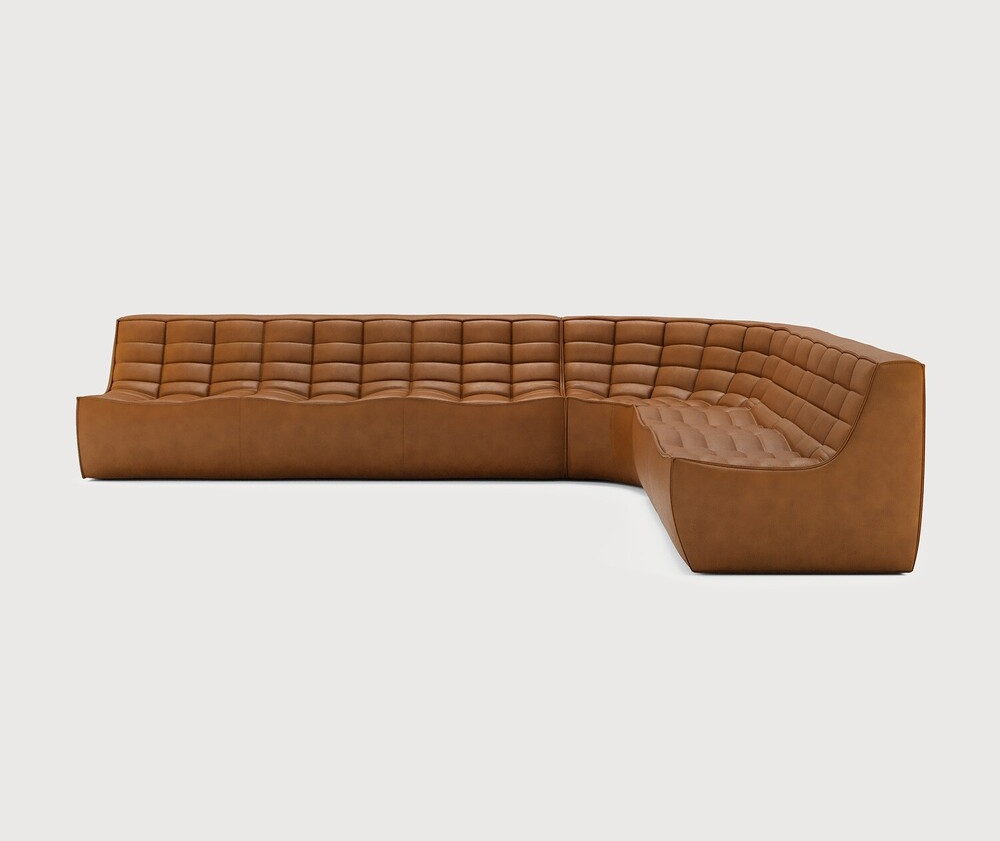 Ethnicraft Design. Jacques Deneef - Canapé modulaire N701 Dimensions : l 330 x h 76 x p 260 cm Le canapé N701 offre un design chaleureux qui respire le confort et la détente. En combinant les modules aux dimensions variées, vous avez une infinité de possibilités dès lors qu'il s'agit de créer votre propre style d'intérieur. Conçu par Jacques Deneef, il est disponible en plusieurs couleurs et matières avec des options pré-configurées ou entièrement personnalisable. Composition canapé droit : module 3 places + module d'angle arrondi à 90° + module 2 places. Des connecteurs inclus pour relier les modules du canapé. 100% cuir aniline. Des variations de couleur peuvent se produire. canapé modulaire