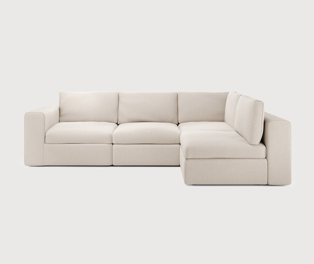 Ethnicraft Canapé modulaire Mellow Dimensions : l 286 x h 63 x p 183 cm Composition : 2 modules 1 place + module d'angle carré à 90° + module d'extrémité avec accoudoir en R. Tissu réalisé à partir de coton recyclé avec des fibres supplémentaires pour des performances techniques. Des connecteurs inclus pour relier les modules du canapé. Tissu réalisé à partir de coton recyclé avec des fibres supplémentaires pour des performances techniques. canapé modulaire